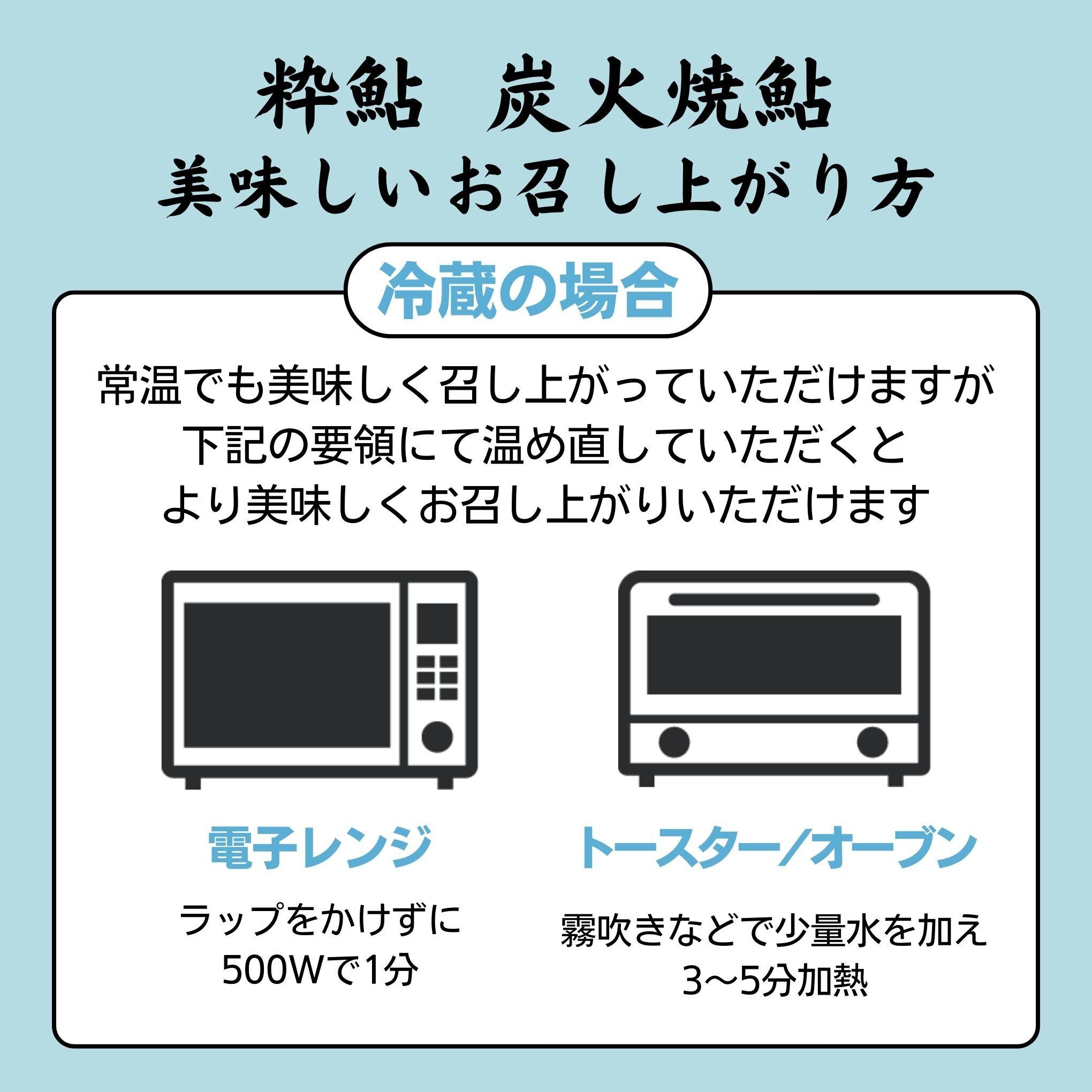 食べ方は、オーブン、電子レンジ、魚やきグリルで温めるだけ。串のままオープンで焼きます。入らない時は串を抜いてもOKです。