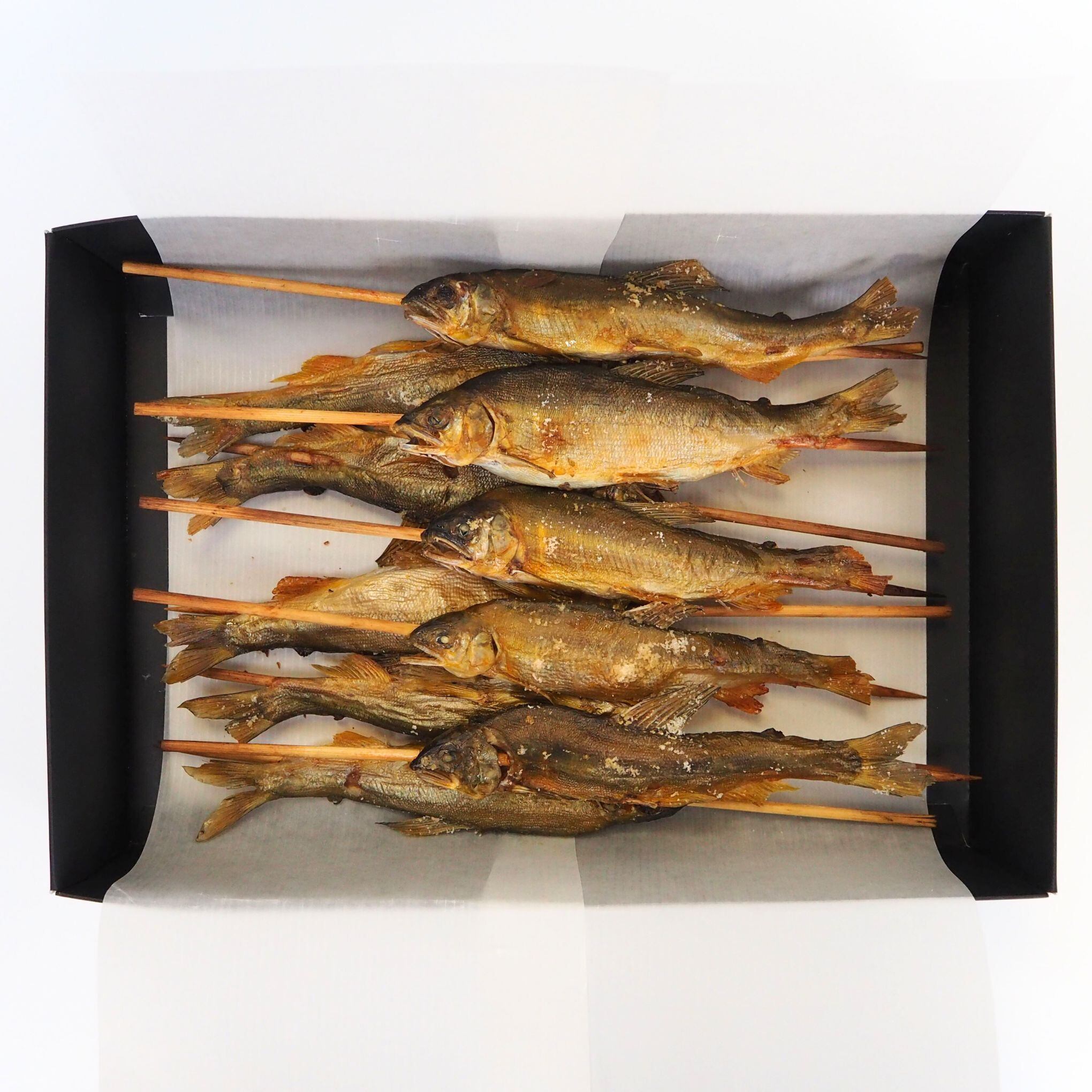 炭火焼鮎を、商標登録「粋鮎(いきあゆ)」のロゴ入り黒箱で発送致します。